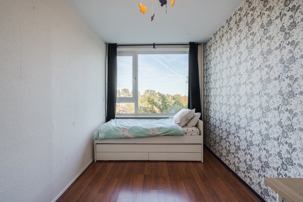 - De portiekflat heeft een woonoppervlakte van 89 m² en beschikt over 3 kamers, waarvan 2 slaapkamers;