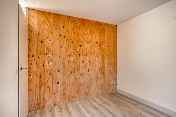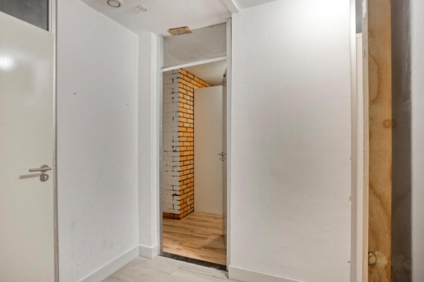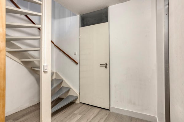 Ook via de inpandige berging is het appartement toegankelijk. Hier bevindt zich een gang die toegang geeft tot twee slaapkamers en de badkamer met toilet. Ook is hier nog een vaste kast.