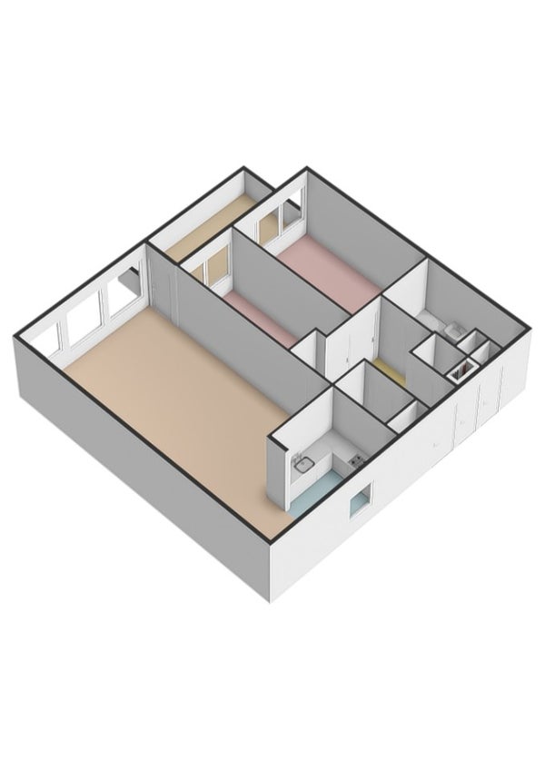 • De galerijflat heeft een woonoppervlakte van 96 m² en beschikt over 3 kamers, waarvan 2 slaapkamers;