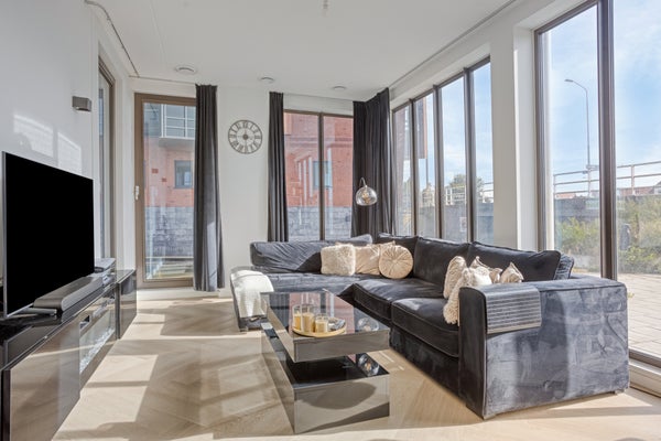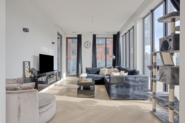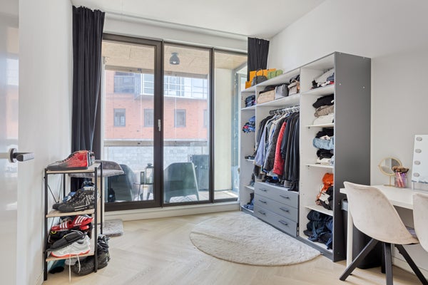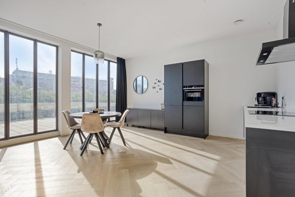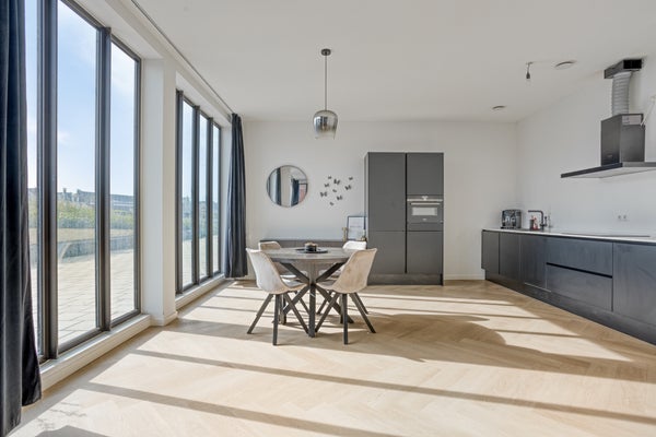 - De portiekflat heeft een woonoppervlakte van 98 m² en beschikt over 3 kamers, waarvan 2 slaapkamers;