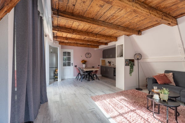 - De bovenwoning heeft een woonoppervlakte van 55 m² en beschikt over 2 kamers, waarvan 1 slaapkamer;