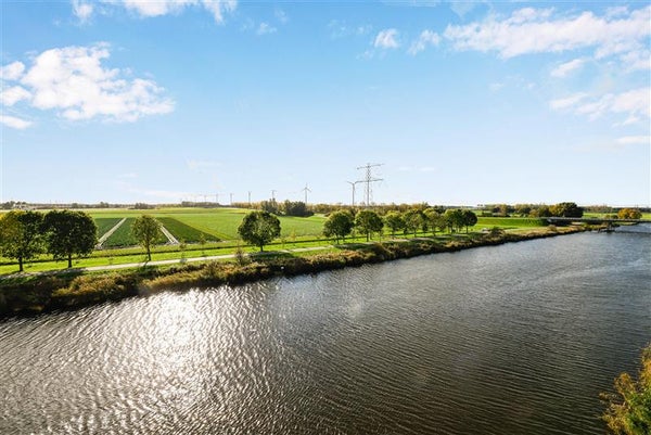 De ruime woonkamer vormt het bruisende middelpunt van de woning. De grote ramen zuigen het daglicht naar binnen en bieden tegelijkertijd een weergaloos uitzicht over de Lage Vaart en de weilanden. De strakke, lichte afwerking en slimme indeling maken dit een plek waar je meteen je eigen draai aan kunt geven.