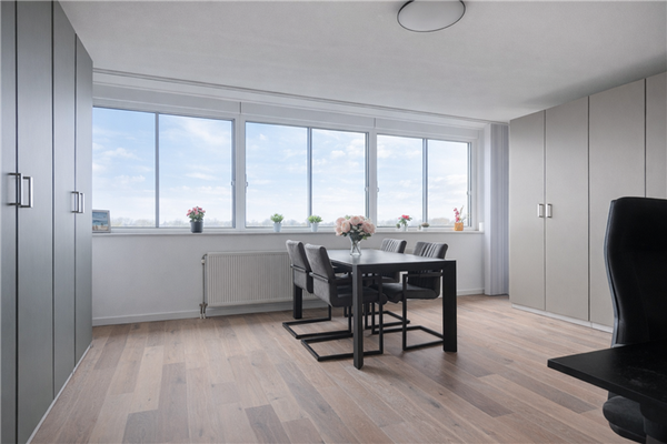 Schuif op een zonnige namiddag de schuifpui open en stap het woningbrede balkon op, met ligging op het gunstige zuidwesten. Of het nu zomer of winter is, hier kun je altijd heerlijk ontspannen. Stel je eens voor: een kop koffie bij zonsopkomst, lange zomeravonden met vrienden of gewoon een boek in alle rust, met alleen het geluid van vogels en de wind in de verte.
