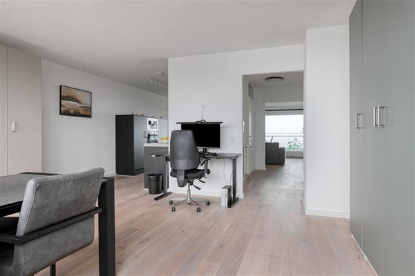 In het midden van de woning tref je een zeer complete keuken die van alle gemakken is voorzien. Denk aan de nodige inbouwapparatuur zoals een koelkast, vriezer, combimagnetron, inductiekookplaat, koffiemachine en vaatwasser. Direct naast de keuken bevindt zich de eetkamer, een lichte ruimte dankzij de brede raampartij. Dit deel van de woning biedt extra flexibiliteit: gebruik het als eetkamer, kantoor of creëer zelfs een extra slaapkamer.