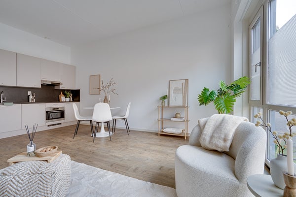 - De portiekflat heeft een woonoppervlakte van 49 m² en beschikt over 2 kamers, waarvan 1 slaapkamer;