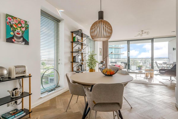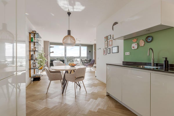 In het populaire Duin vind je dit lichte appartement met prachtig uitzicht op het IJmeer. Gelegen op de tweede verdieping van appartementencomplex San Francisco, beschikt het over twee slaapkamers, een moderne open keuken en een ruime woonkamer. De woonkamer is helder door grote ramen en de schuifpui biedt toegang tot een zonnig balkon van 15 m², perfect voor ontspanning. De keuken is uitgerust met inbouwapparatuur en veel opbergruimte. De badkamer heeft een inloopdouche en dubbele wastafel. Ook zijn er twee bergingen en een eigen parkeerplaats in de garage. Ideaal is de ligging nabij strand en natuur, met voorzieningen zoals winkels en een gezondheidscentrum in de buurt. Het NS-station is op korte afstand, wat het reizen naar Amsterdam en Utrecht vergemakkelijkt.