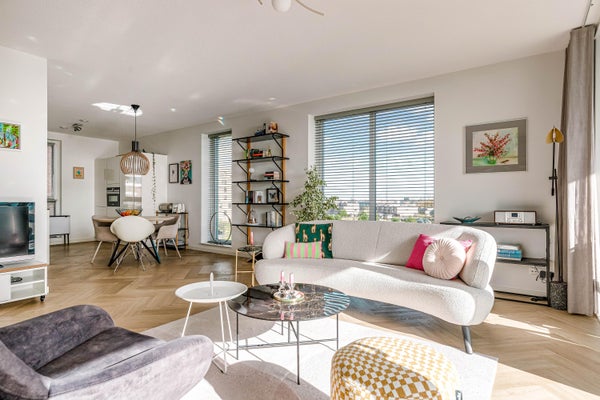- De galerijflat heeft een woonoppervlakte van 102 m² en beschikt over 3 kamers, waarvan 2 slaapkamers;