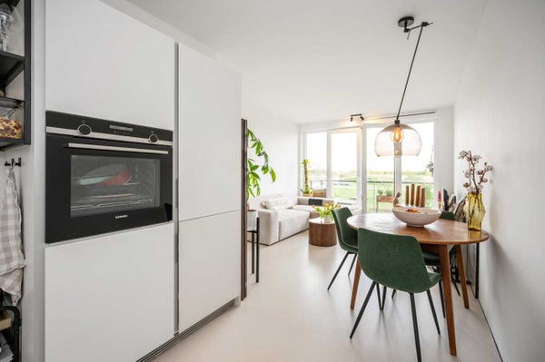 Dit moderne appartement met een woonoppervlak van 54 m² is gelegen in Almere Poort, dicht bij diverse voorzieningen zoals een supermarkt, scholen, een gezondheidscentrum en eetgelegenheden. Het natuurgebied Pampushout, het Almeerderstrand en de gezellige jachthaven zijn ook nabij. Met het busstation op loopafstand en snelwegen A6 en A1 in de buurt, zijn Amsterdam en het Gooi snel bereikbaar. De indeling van het appartement omvat een ruime hal, een slaapkamer, badkamer, berghok en een lichte woonkamer die toegang biedt tot een zonnig balkon op het zuidwesten. De luxe Bulthaup keuken is van alle gemakken voorzien. Bijzonderheden zijn vloerverwarming, een eigen berging van 6 m² en een parkeerplaats.