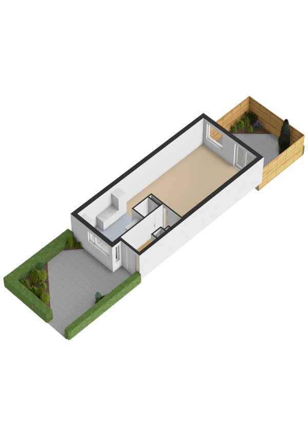 - Aanwezig (20 m², gelegen op het noordwesten)