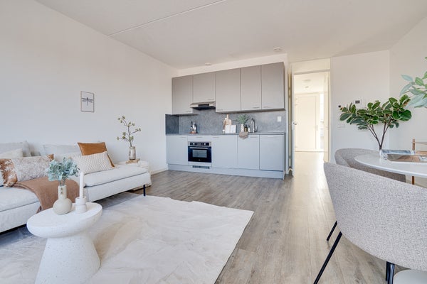 - De portiekflat heeft een woonoppervlakte van 49 m² en beschikt over 2 kamers, waarvan 1 slaapkamer;