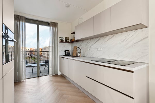 Wonen in het moderne 3-kamer appartement aan de Moldaviëstraat 30 in de Bushwick Building, New Brooklyn Almere Poort, is een unieke ervaring. Dit energiezuinige appartement van 76 m², compleet met vloerverwarming, is ideaal gelegen nabij het NS station, bushalte en winkels. De centrale hal toont industriële details en biedt toegang tot de fietsenberging. Op de tweede verdieping vind je een ruime woonkamer met grote ramen en een luxe keuken met inbouwapparatuur. Het appartement bevat twee slaapkamers en een moderne badkamer. Bewoners kunnen genieten van een gemeenschappelijke binnentuin. Bijzonderheden zijn onder andere het energielabel A+, de eigen berging en de uitstekende bereikbaarheid naar Amsterdam.
