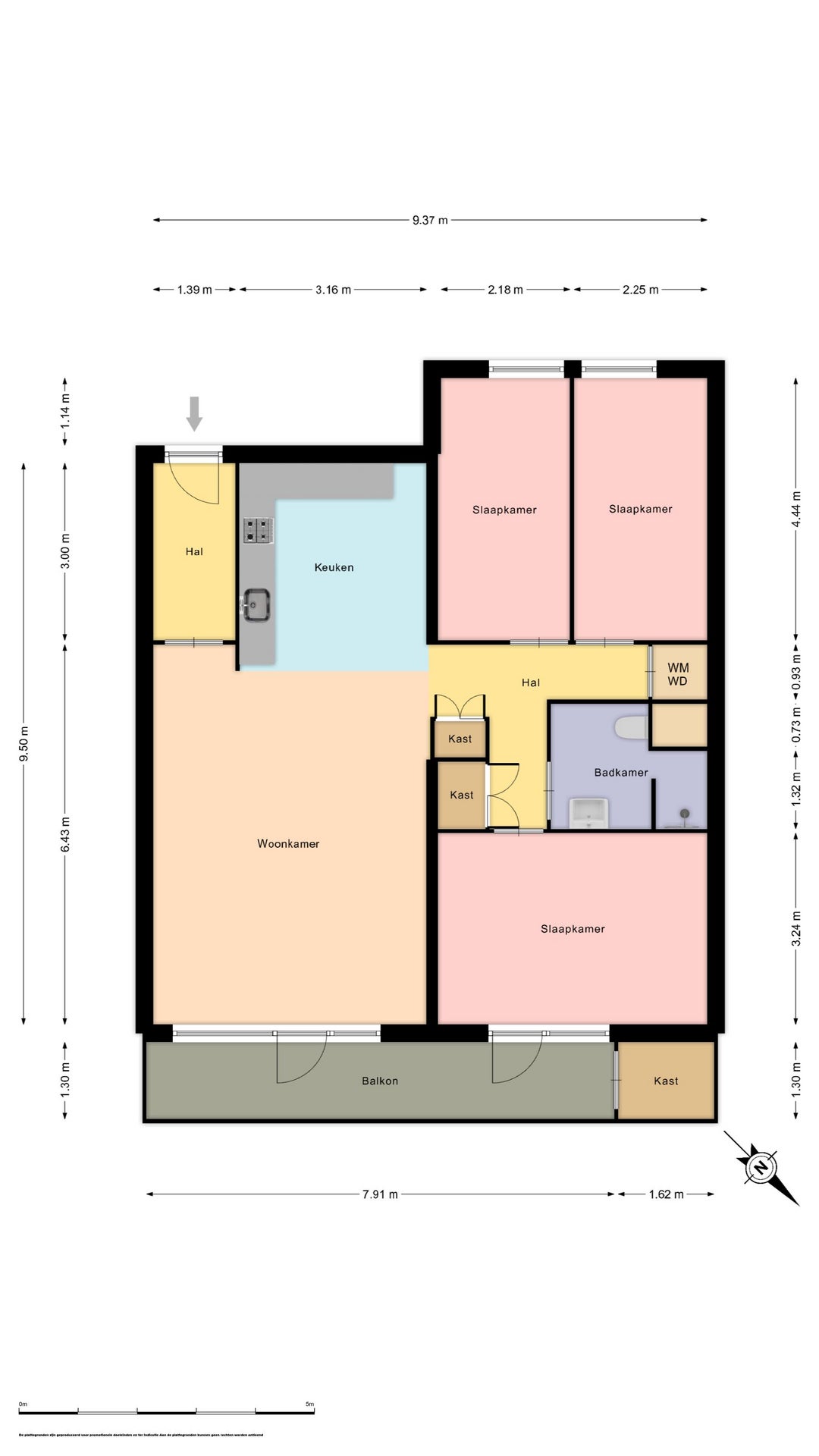 - De galerijflat heeft een woonoppervlakte van 96 m² en beschikt over 4 kamers, waarvan 3 slaapkamers;