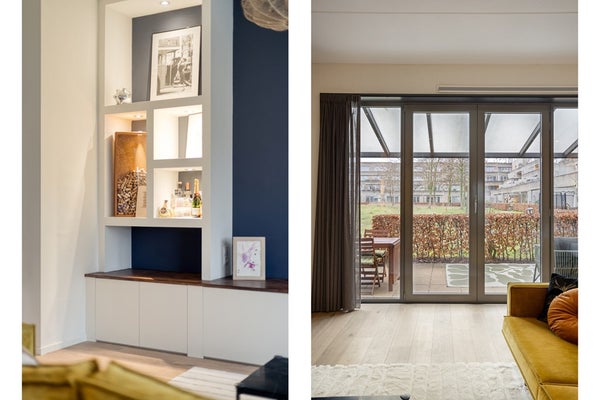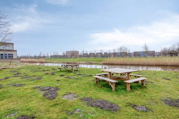 De woning beschikt over een zonnig terras van circa 6 meter breed, met overkapping, direct grenzend aan het groene binnenterrein. Dankzij de gunstige ligging is dit een fijne plek om vanaf de middag tot in de avond van de zon te genieten.