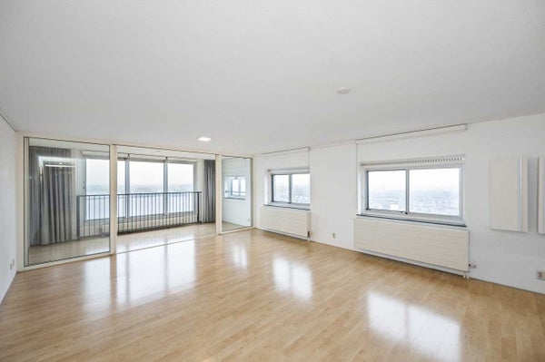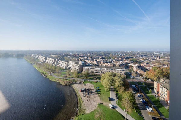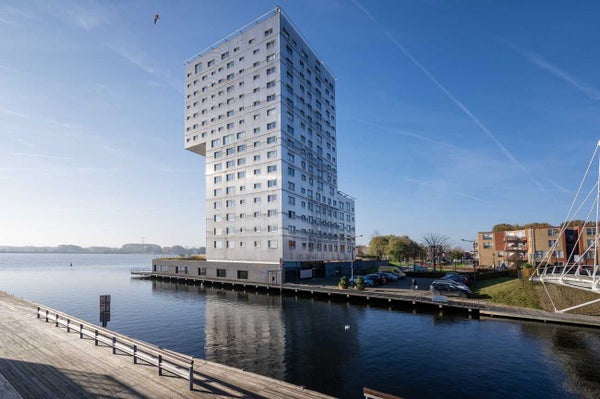 Dit lichte en aantrekkelijk ingedeelde 3-kamerappartement bevindt zich op de 13e verdieping van het appartementencomplex Silverline, met een fraai uitzicht over het Weerwater. Dit complex, ontworpen door Claus en Kaan, is omgeven door een verzorgde tuin en biedt aan de waterzijde een afgeschermde loopsteiger met zitgelegenheden. Het appartement beschikt over een eigen parkeerplaats en fietsenberging. De centrale ligging in Almere biedt een uitgebreid aanbod van winkels, horeca en culturele voorzieningen binnen loopafstand, evenals goede bereikbaarheid via het station en snelwegen. De indeling omvat een lichte woonkamer met loggia, een open keuken met inbouwapparatuur, twee slaapkamers, een badkamer met inloopdouche, een separaat toilet en extra bergruimtes. Met 97 m2 woonoppervlak en energielabel A is dit appartement zowel comfortabel als functioneel.