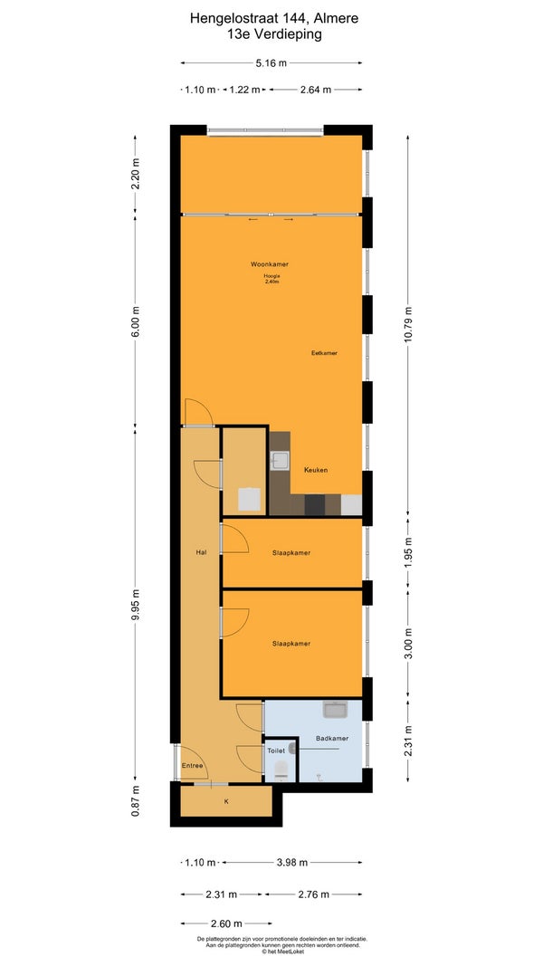 • De galerijflat heeft een woonoppervlakte van 97 m² en beschikt over 3 kamers, waarvan 2 slaapkamers;