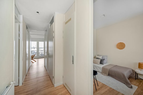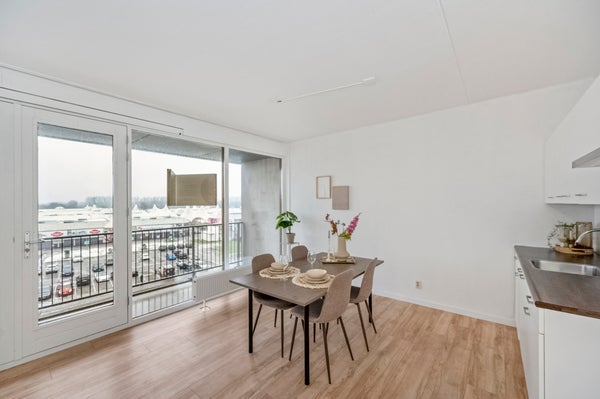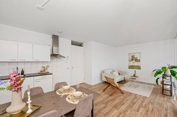 Dit lichte drie-kamer appartement in het centrum van Almere Buiten, gelegen in het Baltimore Square, biedt een ideale woonlocatie. Met 67 m² is het appartement perfect ingericht met twee slaapkamers en een royaal balkon op het zuidwesten. De sfeervolle woonkamer wordt verlicht door plafondhoge ramen en heeft openslaande deuren naar het balkon, dat uitkijkt op het winkelcentrum “Doemere”. De badkamer is ruim en beschikt over een wastafel en douche, terwijl het aparte toilet met fontein ook aanwezig is. Bovendien heeft het appartement een berging met wasmachineaansluiting. Het complex is goed bereikbaar met een lift, en alle faciliteiten zoals winkels en OV zijn dichtbij. Extra voordelen zijn het energielabel A en een lage VVE-bijdrage.