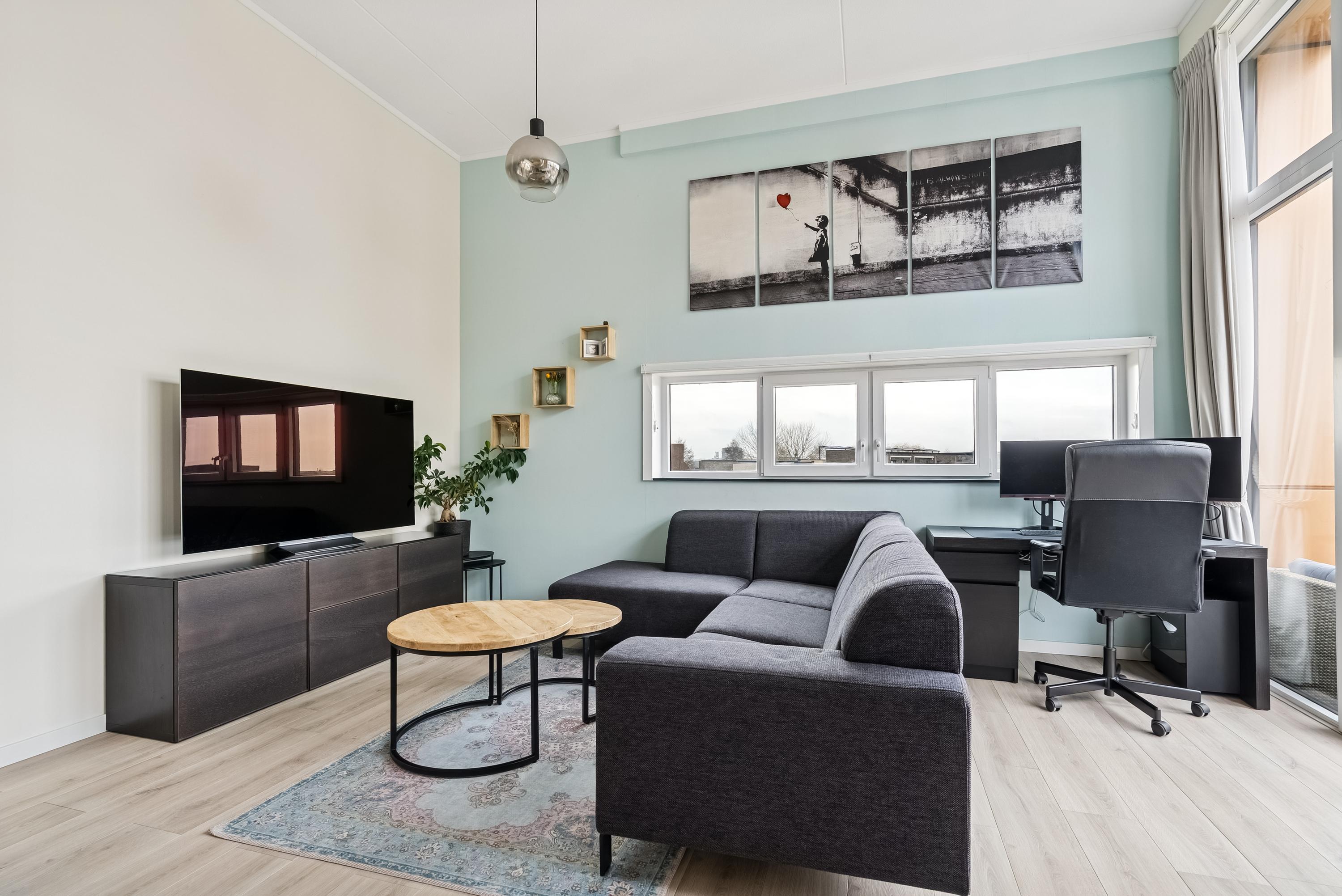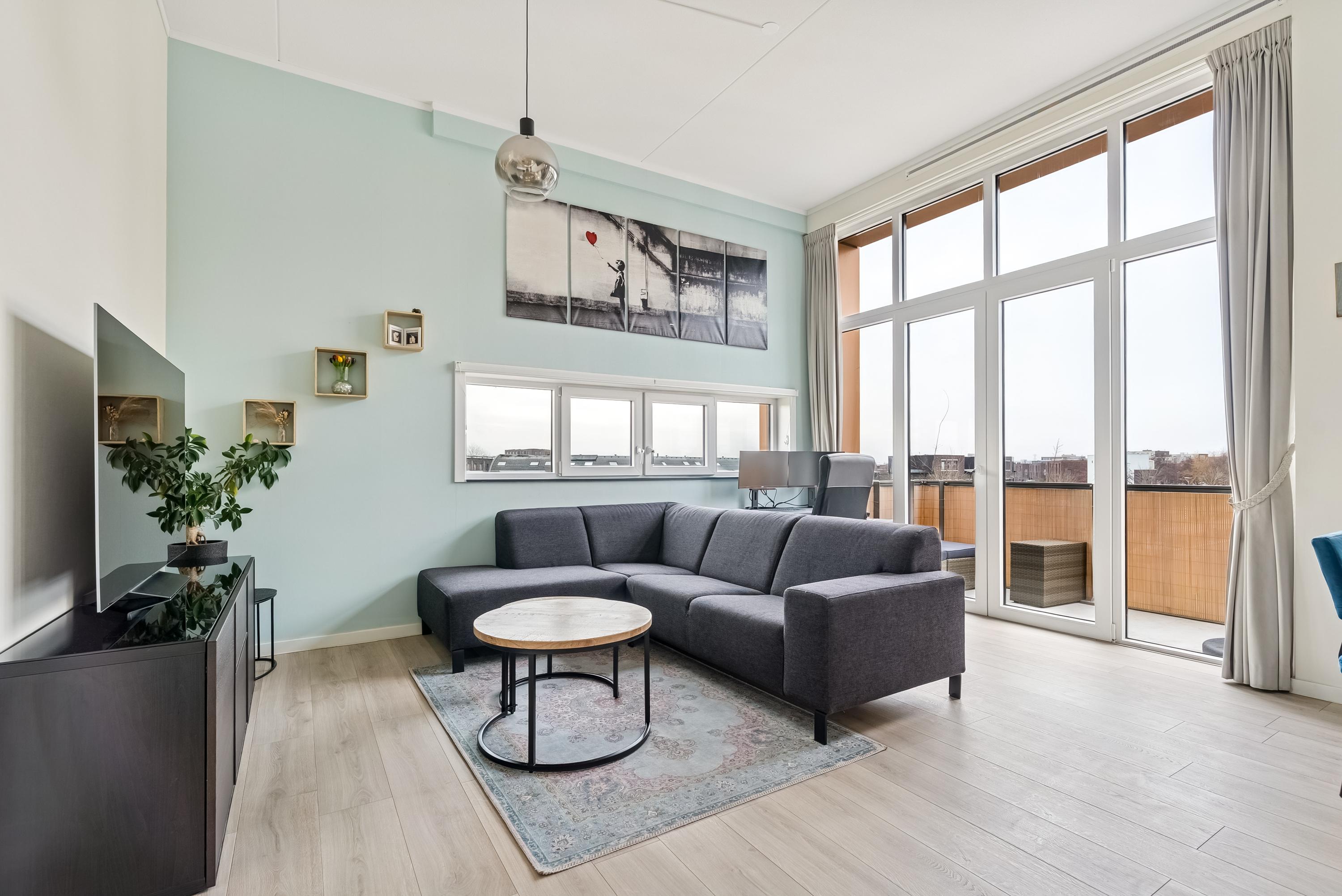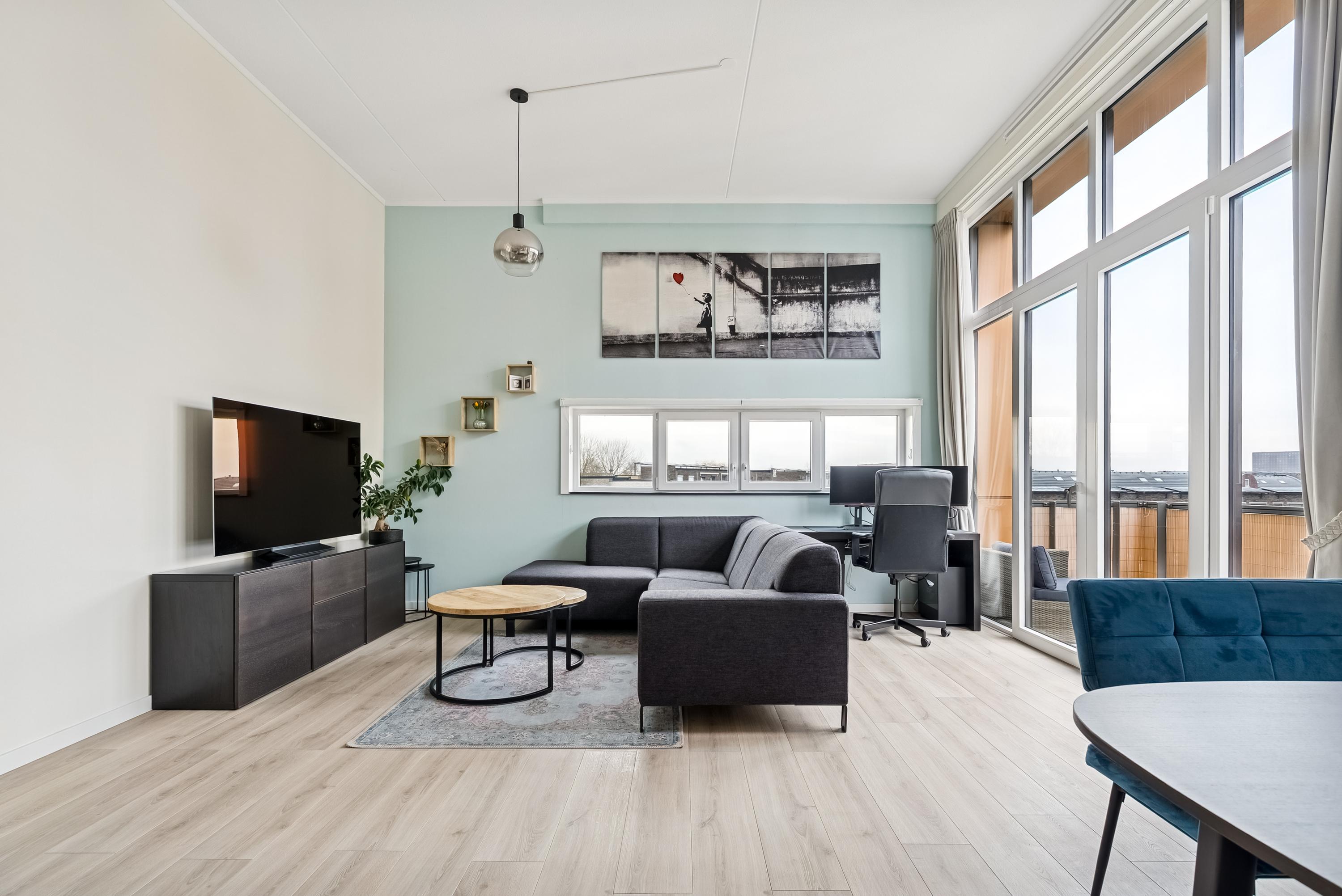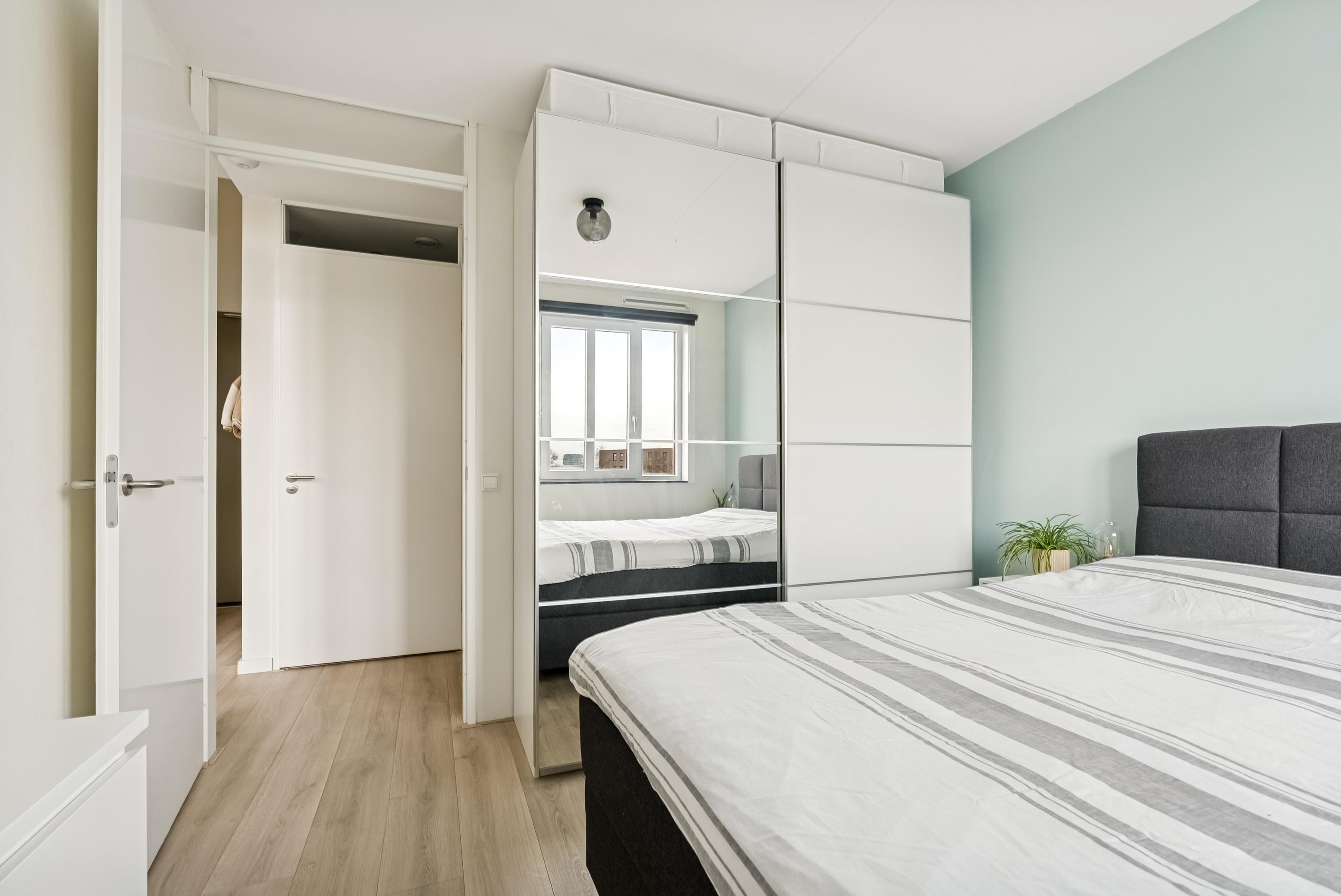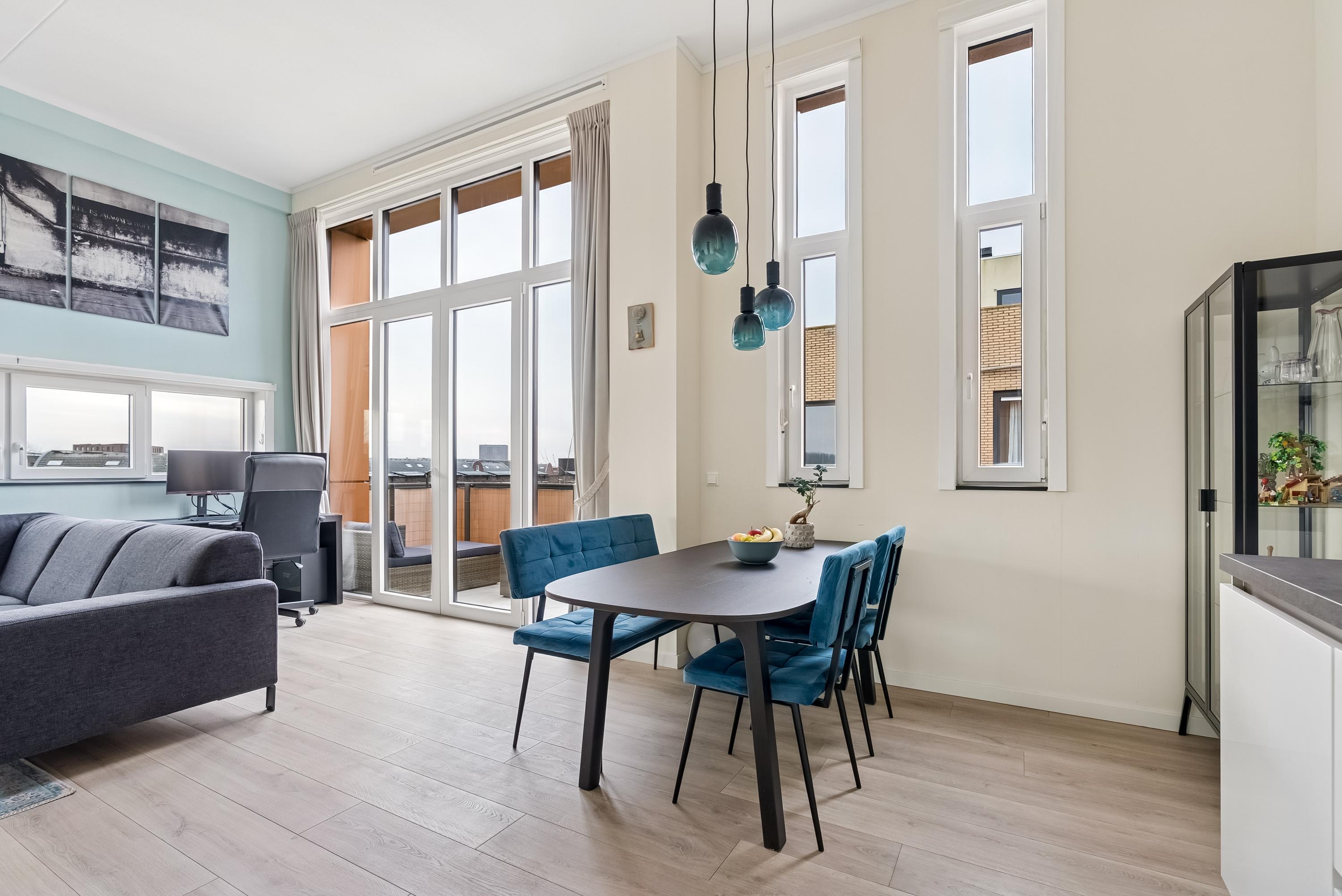 In Almere Poort bevindt zich dit ruime appartement in een modern complex. De hoge plafonds en grote ramen zorgen voor een lichte en open sfeer. Met twee slaapkamers, een aangename woonkamer met open keuken, en een zonnig balkon op het zuidoosten, biedt deze woning veel comfort. Vanaf de centrale entree met intercom en lift bereik je het appartement op de tweede verdieping. Binnenkomend, tref je een hal met toegang tot een toilet, wasmachineruimte, badkamer, slaapkamers en de woonkamer. De open keuken is uitgerust met moderne inbouwapparatuur. De woonkamer met openslaande deuren leidt naar het balkon, ideaal voor zonneschijn en sociale momenten. De locatie nabij water en groen maakt het plaatje compleet.