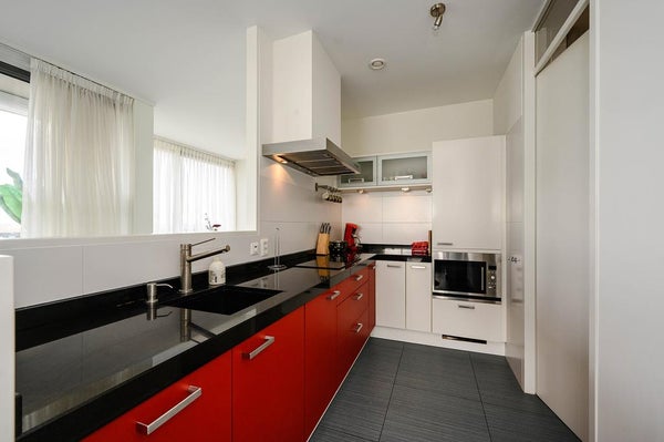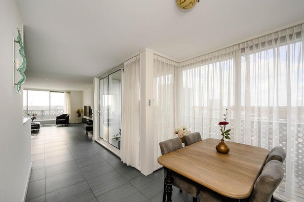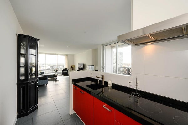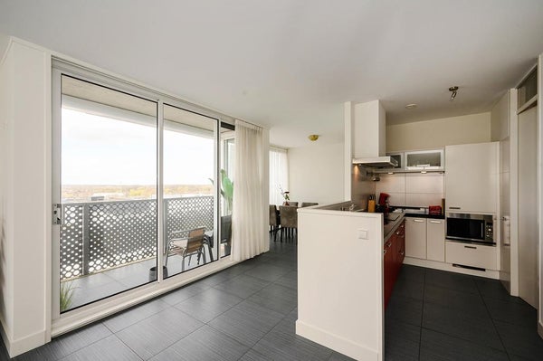 - De galerijflat heeft een woonoppervlakte van 106 m² en beschikt over 3 kamers, waarvan 2 slaapkamers;