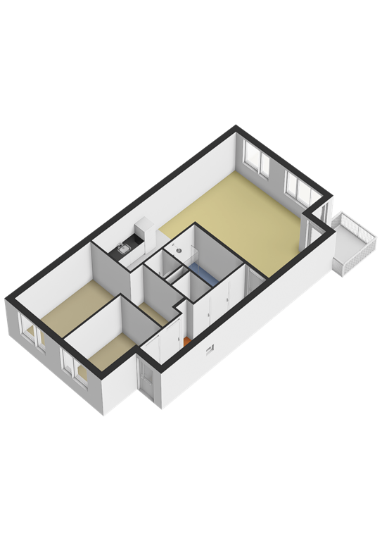 - De portiekflat heeft een woonoppervlakte van 74 m² en beschikt over 3 kamers, waarvan 2 slaapkamers;