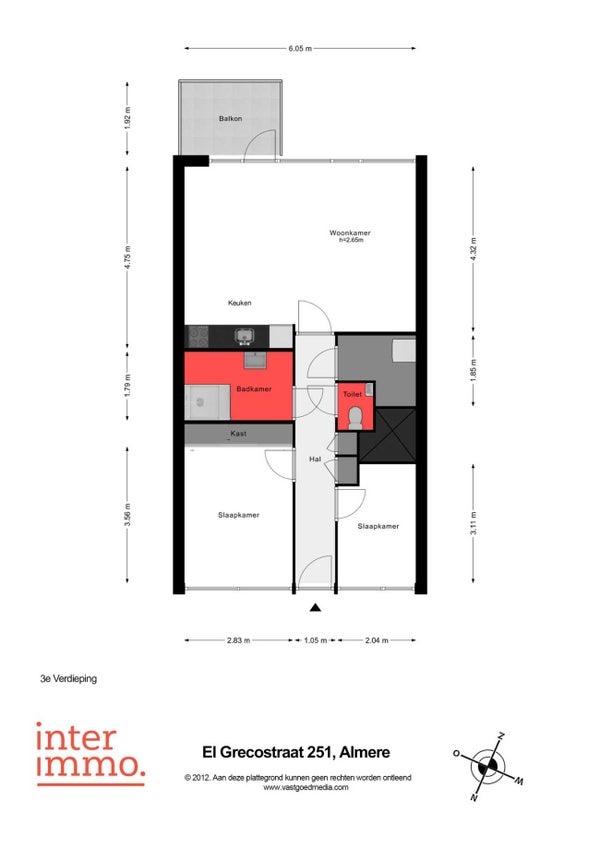 - De galerijflat heeft een woonoppervlakte van 64 m² en beschikt over 3 kamers, waarvan 2 slaapkamers;