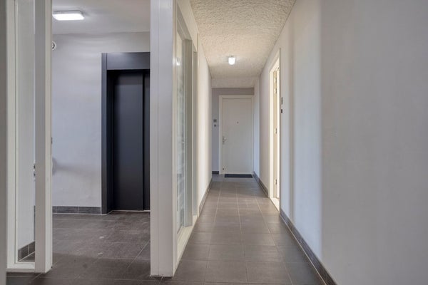 De entree geeft toegang tot een centrale hal die in verbinding staat met alle vertrekken. Vanuit hier bereik je de woonkamer, beide slaapkamers, de badkamer, de technische ruimte met cv-installatie en de meterkast.
