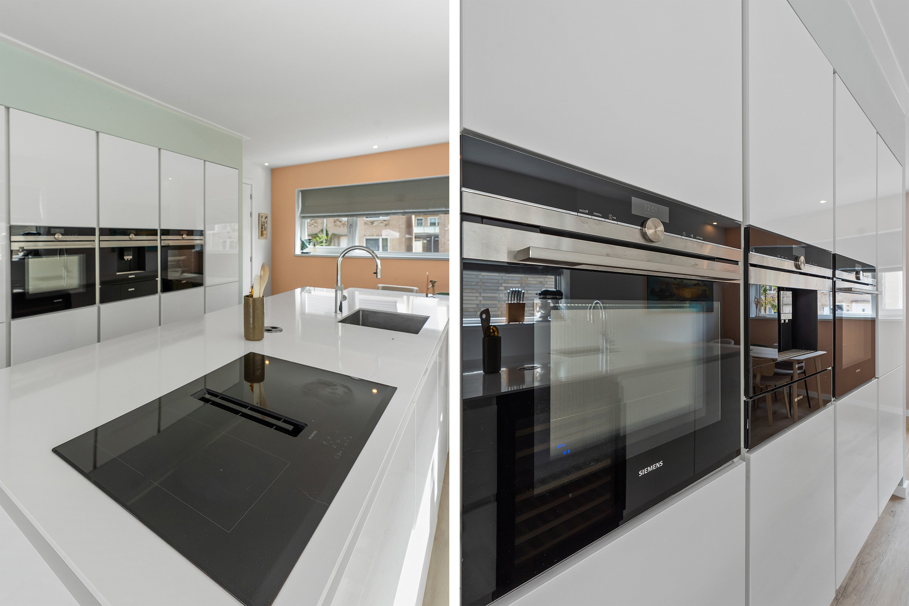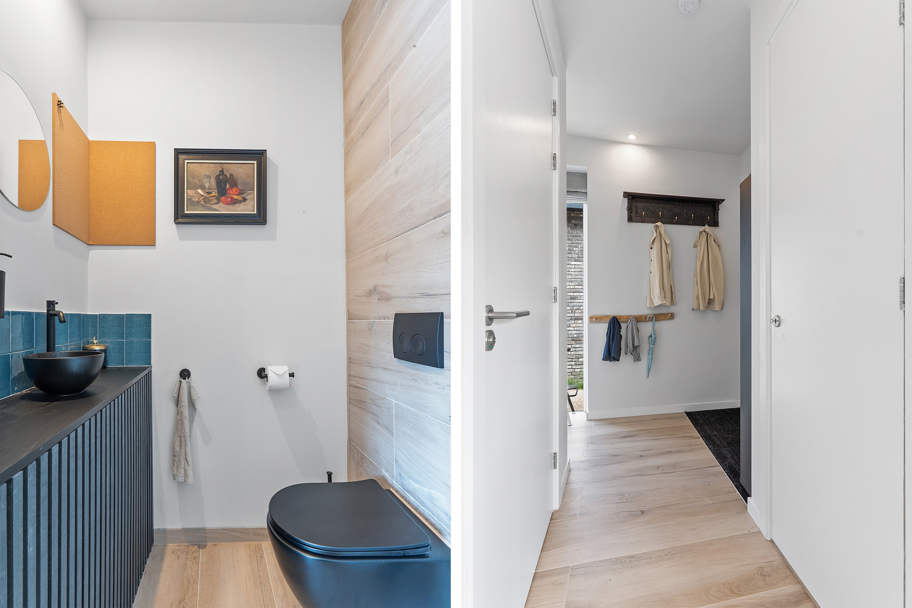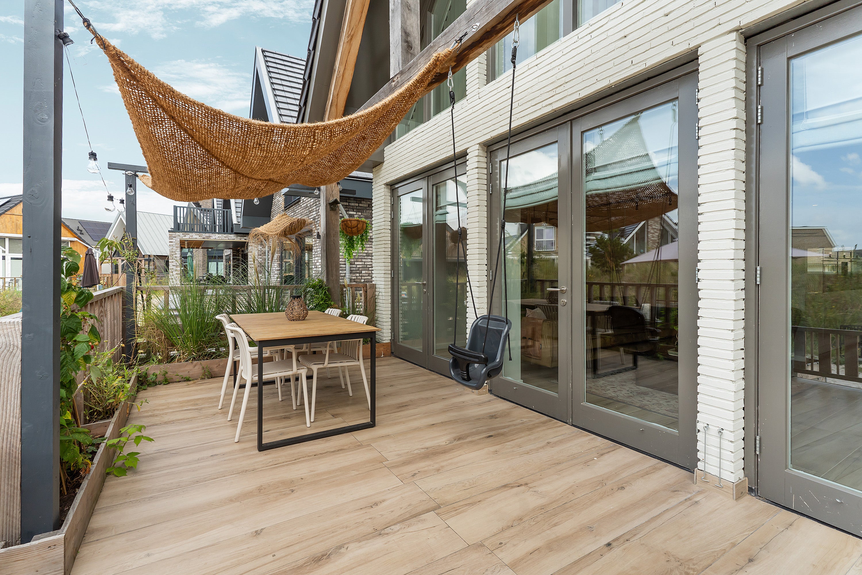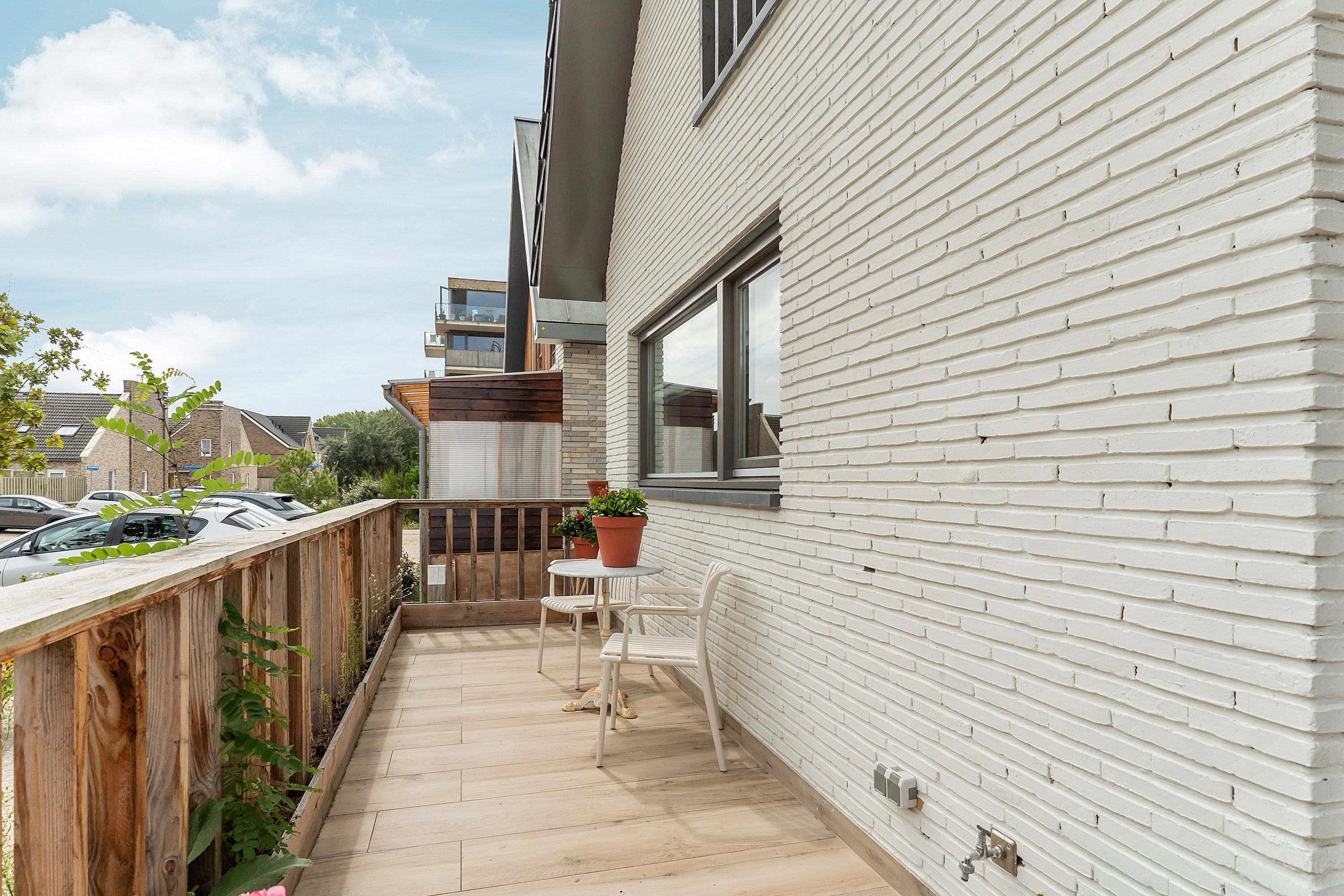 De woonkamer heeft keramisch parket met vloerverwarming en drie openslaande deuren naar het zonnige terras, perfect voor buitenleven. De eerste verdieping is uitgebreid met twee dakkapellen, waardoor extra ruimte is gecreëerd. De luxe badkamer is voorzien van een inloopdouche, ligbad en wastafelmeubel.