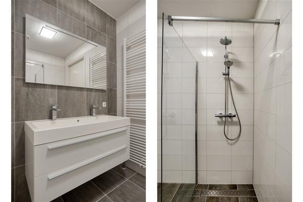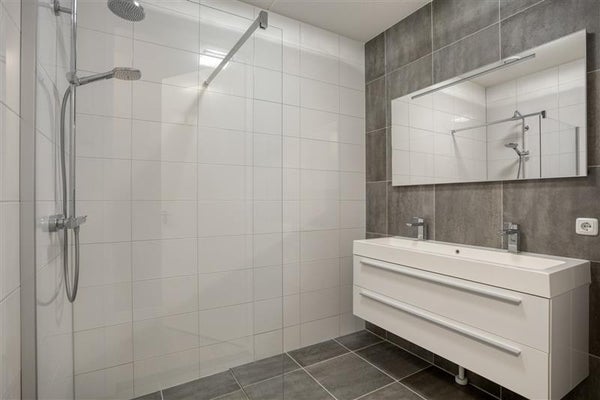 • Moderne badkamer en apart toilet: De strak afgewerkte badkamer met inloopdouche en dubbele wastafel biedt zowel stijl als functionaliteit.