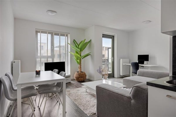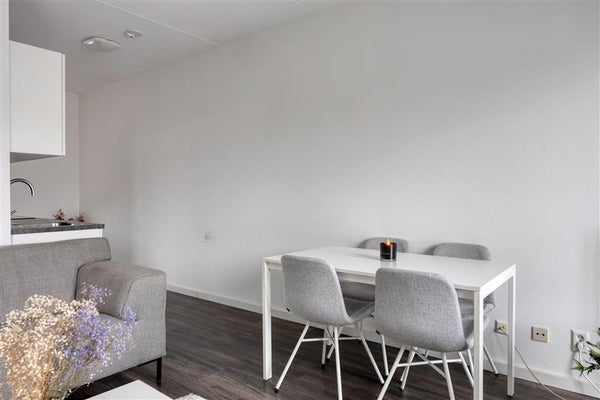 Dankzij grote raampartijen stroomt het licht de woonkamer binnen, wat zorgt voor een frisse, open uitstraling. De ruimte is perfect in te richten als knusse plek om thuis te relaxen, te werken of vrienden te ontvangen. De woonkamer grenst direct aan het balkon, zodat binnen en buiten moeiteloos in elkaar overlopen. Een plek met écht volop leefcomfort!