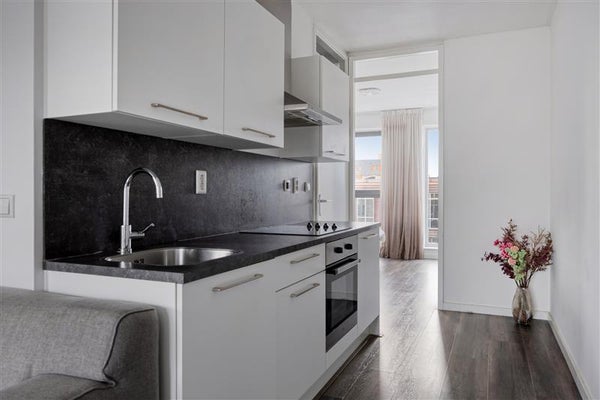 Dit fijne 2-kamer appartement biedt een slimme indeling en ook nog eens een nette afwerking. De woonkamer is licht en geeft toegang tot een gezellig balkon, terwijl de slaapkamer ruimte en rust biedt. De open keuken is stijlvol en uitgerust met inbouwapparatuur. Met een moderne badkamer én een handige berging beneden, heb je alles wat je nodig hebt. Plus: je woont op een toplocatie dicht bij het OV, supermarkten en parken. Kortom, alle ingrediënten voor een heerlijk wooncomfort!