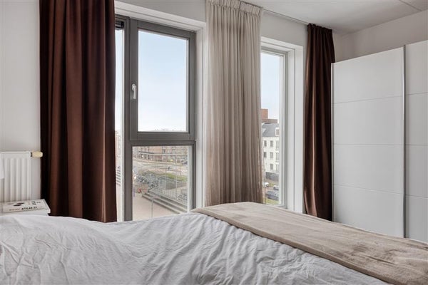 De slaapkamer voelt dankzij het ruime formaat extra comfortabel aan. Bovendien zorgen grote ramen voor een fijne lichtinval, waardoor de kamer nog uitnodigender wordt. Genoeg ruimte voor een groot bed, een kledingkast en eventueel een werkhoekje. Dit is een heerlijke plek om in alle rust te slapen, te lezen of gewoon even op te laden.