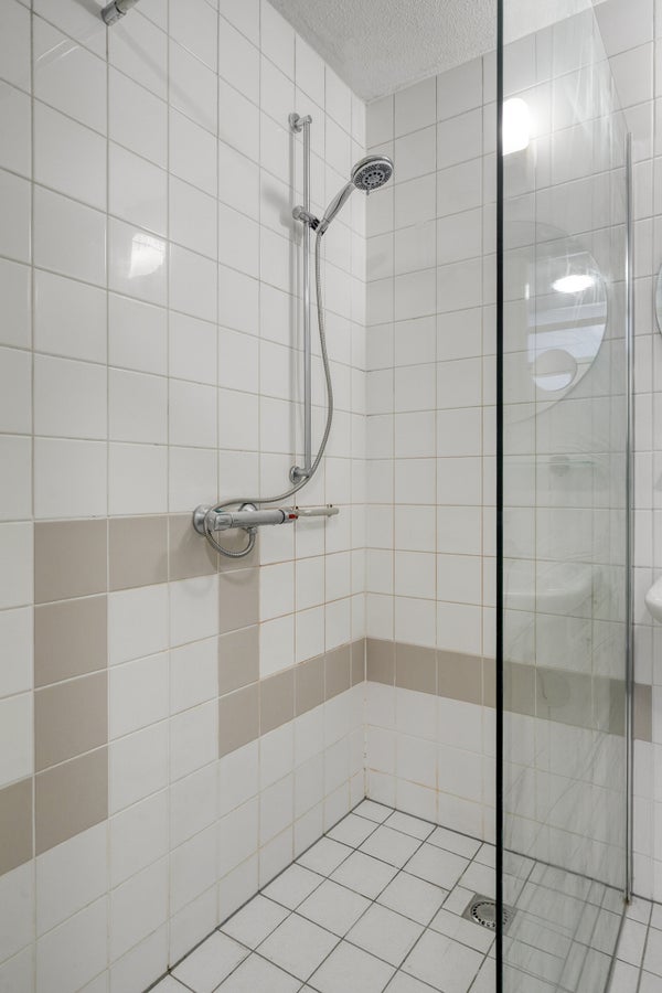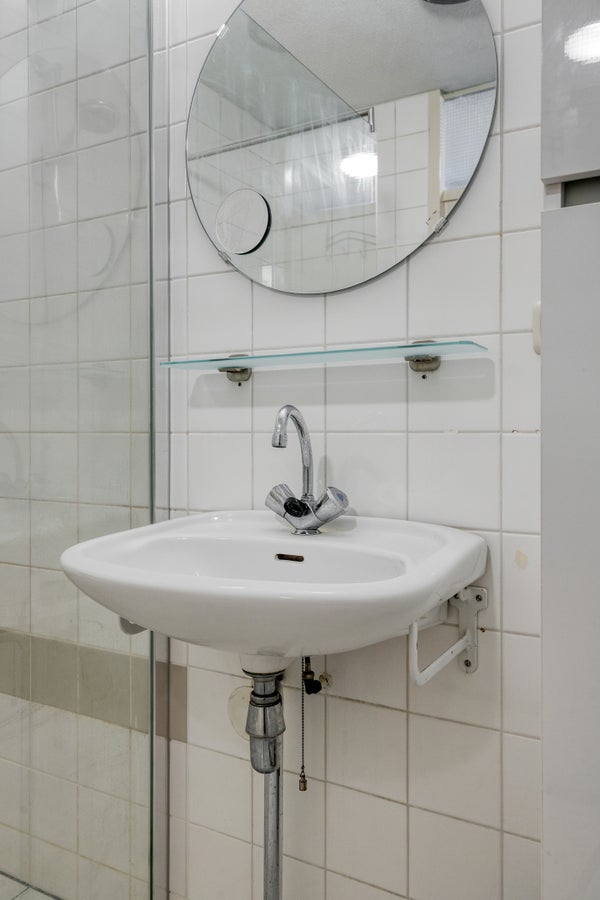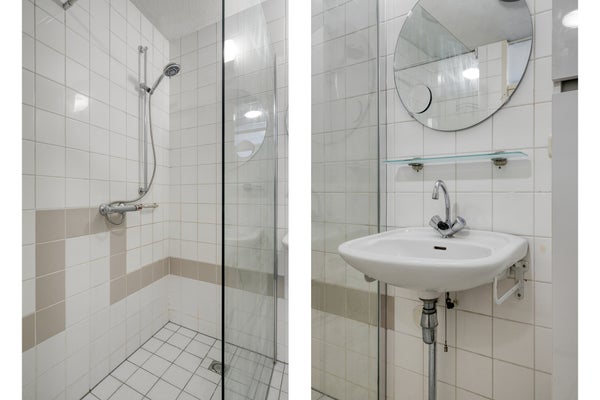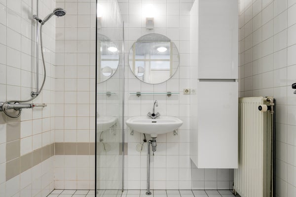 – Badkamer met inloopdouche, wastafel en radiator;