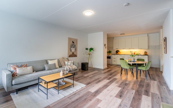 - De portiekflat heeft een woonoppervlakte van 67 m² en beschikt over 2 kamers, waarvan 1 slaapkamer;