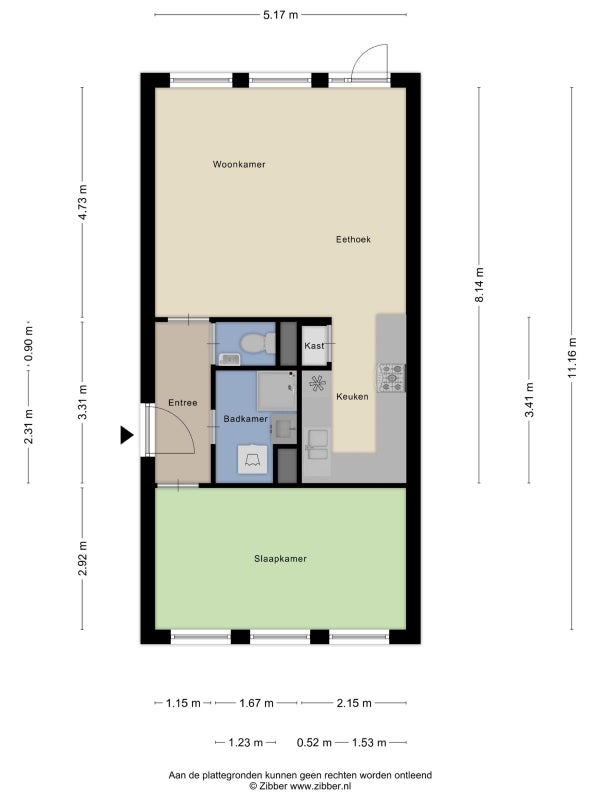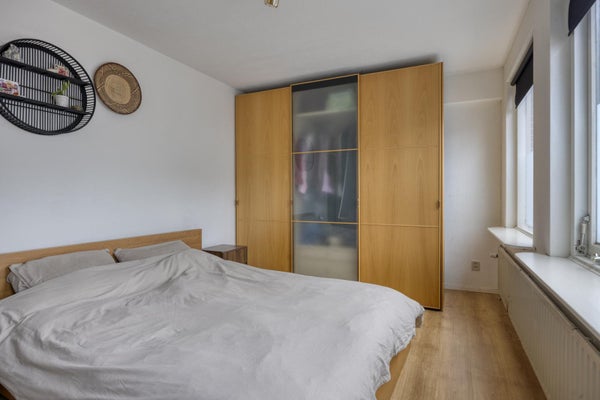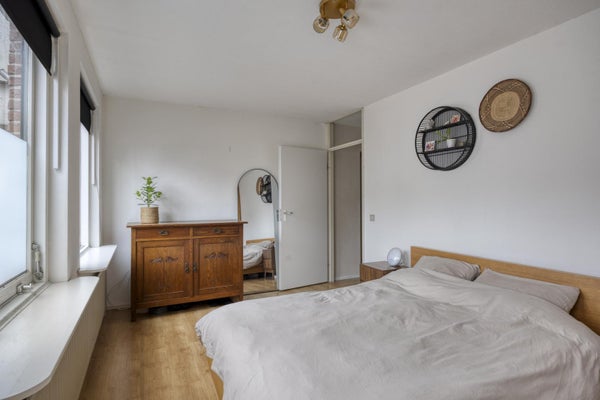 Aan de voorzijde bevindt zich de slaapkamer, rustig gelegen en van goed formaat, met voldoende ruimte voor een tweepersoonsbed en kastruimte.