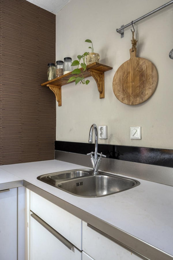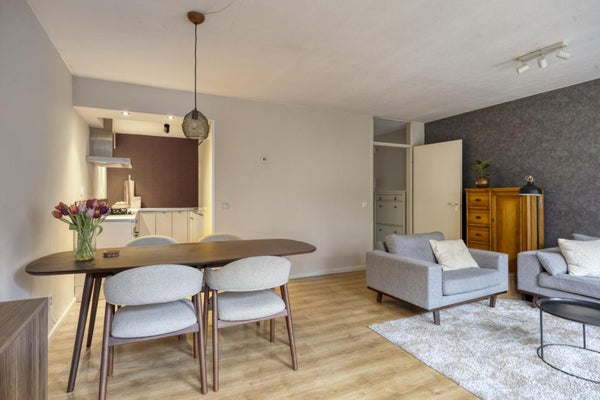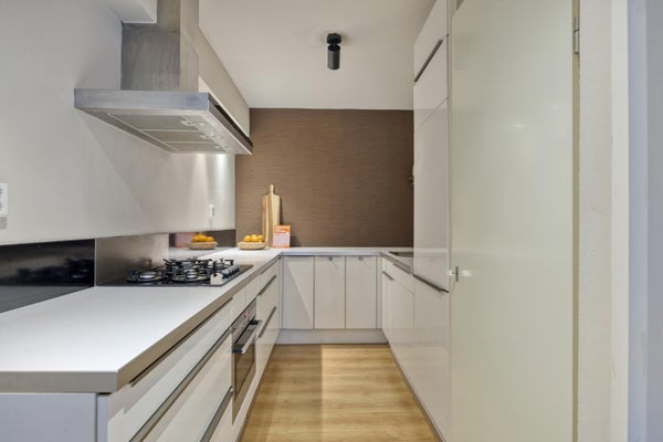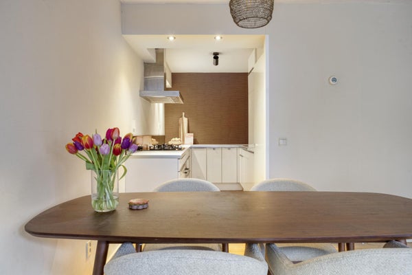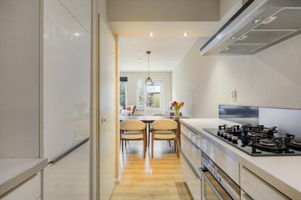 Je vindt hier de woonkamer met een fijne verbinding naar buiten. Dankzij de ligging op de begane grond stap je zo de tuin in en geniet je van een rustige, groene setting. De keuken is praktisch ingericht en voorzien van diverse inbouwapparatuur. Een fijne plek om dagelijks te koken, met alles binnen handbereik.