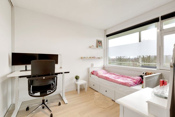 - De galerijflat heeft een woonoppervlakte van 56 m² en beschikt over 3 kamers, waarvan 2 slaapkamers;