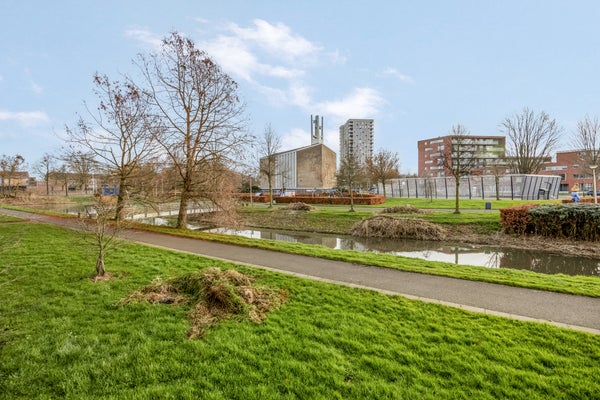 Het moderne gebouw uit 2007 heeft een mooie uitstraling mede dankzij het kleurgebruik en de opvallend grote buitenruimtes. Uiteraard is het gebouw geïsoleerd, op het dak liggen zonnepanelen en de ligging aan het groen en water is fraai. Er is parkeergelegenheid voor de deur en bij het appartement hoort een privé (fietsen)berging.