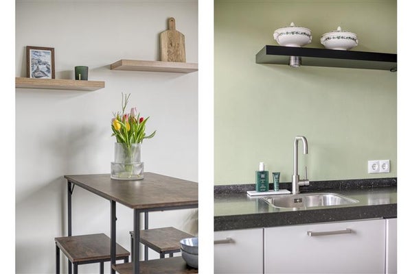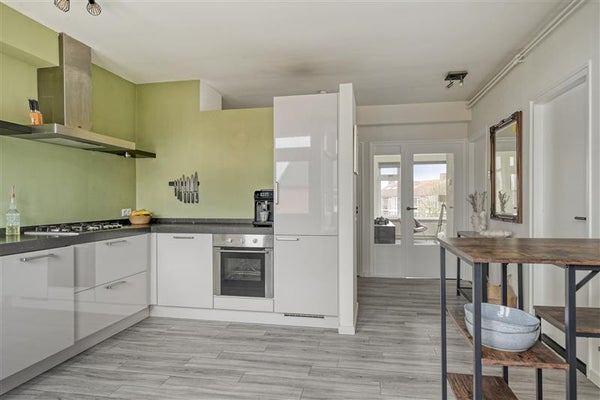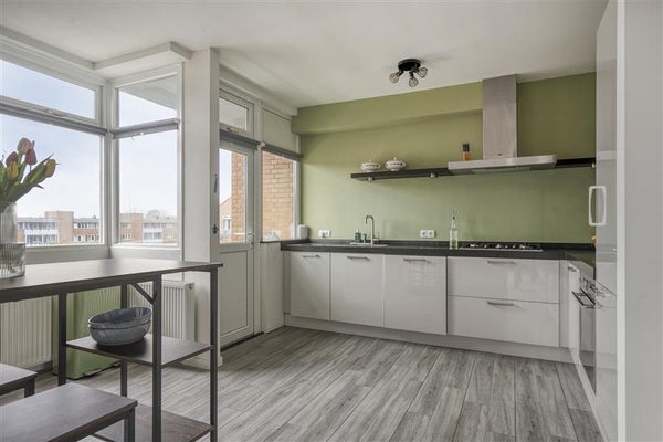 De keuken is apart gesitueerd en opvallend ruim en licht door de extra raampartijen. Hier kook je in een prettige, open sfeer en via de keuken stap je zo het balkon op — ideaal voor een kop koffie in de ochtend of een snelle lunch in de zon.