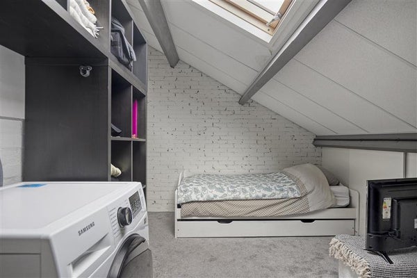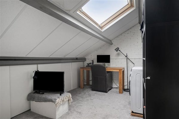 Een absolute plus is de extra verdieping. De zolderkamer is een volwaardige ruimte met dakraam en biedt volop mogelijkheden. Of je nu een thuiswerkplek zoekt, een hobbyruimte of een logeerkamer, hier kun je alle kanten op. Het realiseren van een vaste trap behoort zelfs tot de mogelijkheden.