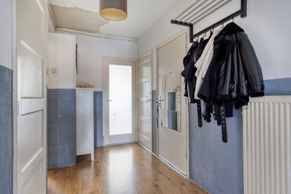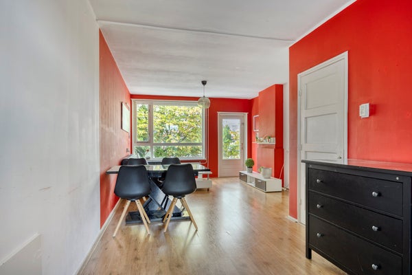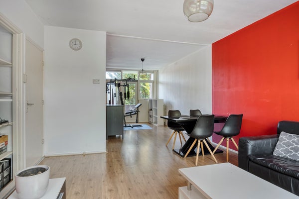 - De portiekwoning heeft een woonoppervlakte van 64 m² en beschikt over 3 kamers, waarvan 2 slaapkamers;