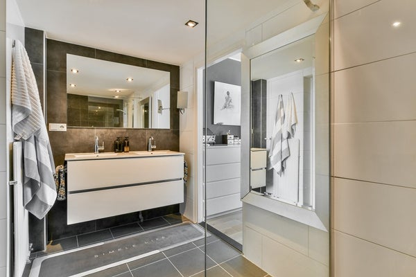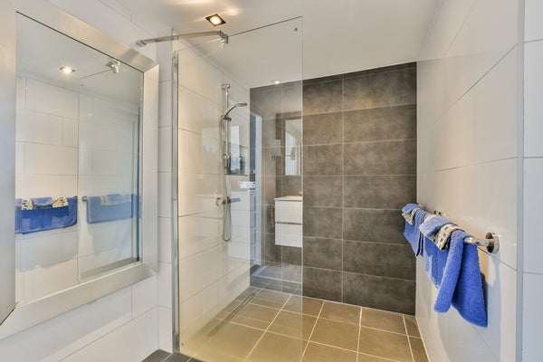 Het appartement beschikt over twee slaapkamers. De hoofdslaapkamer grenst aan de badkamer, die via de hal bereikbaar is. De tweede kamer kan op verschillende manieren worden ingericht, zoals slaapkamer, werkkamer of logeerkamer. De stijlvolle badkamer is voorzien van een ruime inloopdouche en een dubbele wastafel met meubel. Het toilet is separaat. Daarnaast is er een aparte ruimte voor de wasmachine.