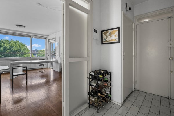 Dit ruime appartement aan de Meander, gelegen op de vijfde verdieping, heeft twee slaapkamers en een balkon aan de voorzijde. Er is een mogelijkheid om de woonkamer te vergroten, wat het wooncomfort kan verhogen. De entree biedt toegang tot alle vertrekken en heeft een bergkast en een separaat toilet. De woonkamer is licht en biedt toegang tot het balkon. De keuken is uitgerust met een 4-pits gasfornuis, koelkast en wasdroger, met extra ruimte door het voormalige balkon. Er is een badkamer met dubbele wastafel en ligbad. Op de begane grond bevindt zich een berging. Het appartement is gasloos en ligt op loopafstand van het Stadshart van Amstelveen, met winkels en openbaar vervoer dichtbij. De VvE werkt aan toekomstplannen voor het pand.
