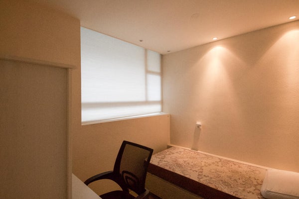 Entree via hal met aangrenzend een bescheiden slaapkamer, of in te richten als werkplek;