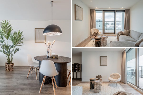 - De portiekflat heeft een woonoppervlakte van 104 m² en beschikt over 3 kamers, waarvan 2 slaapkamers;
