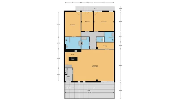 - De galerijflat heeft een woonoppervlakte van 158 m² en beschikt over 4 kamers, waarvan 3 slaapkamers;