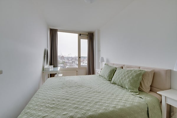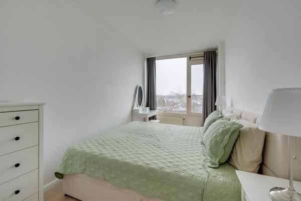 Aan de achterzijde bevinden zich twee goed bemeten slaapkamers, beide met een prettig uitzicht op groen. Vanuit één van de slaapkamers bereik je het tweede balkon op het westen, waar je na een lange dag heerlijk geniet van de middag- en avondzon.