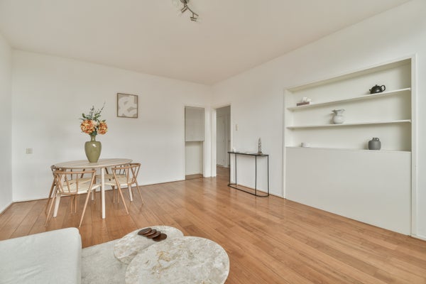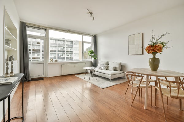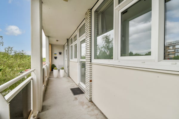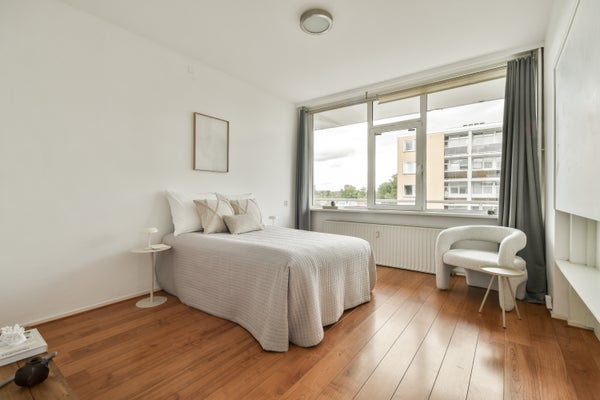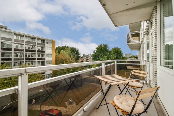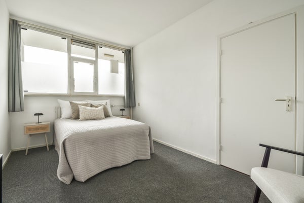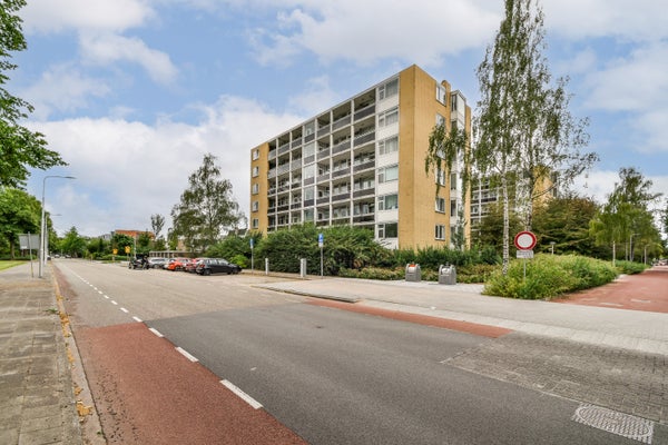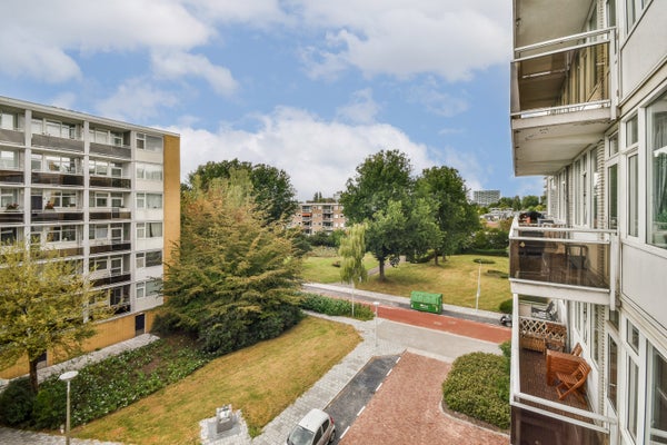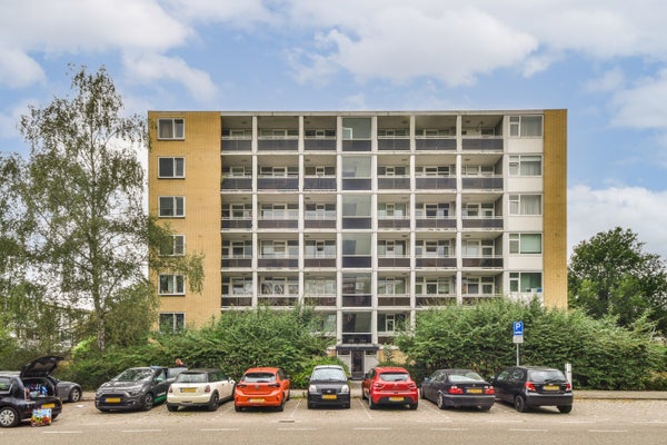 Op de vierde verdieping van de Van Heuven Goedhartlaan vind je dit lichte 3-kamerappartement met een west-facing balkon. Je komt binnen via een centrale hal die toegang biedt tot de ruimtes. Aan de voorkant bevindt zich de keuken, uitgerust met moderne apparatuur en een inbouwkast. Daarnaast is er een slaapkamer met ingebouwde kast. De badkamer heeft een praktische indeling met een inloopdouche en aansluitingen voor een wasmachine. De ruime en lichte woonkamer heeft grote ramen en biedt toegang tot het balkon waar je kunt genieten van de zon. Een tweede slaapkamer is ook aanwezig. Op uitstekende locatie nabij het stadshart van Amstelveen, met voorzieningen en groen in de buurt, is dit appartement een ideale plek voor comfortabel wonen.