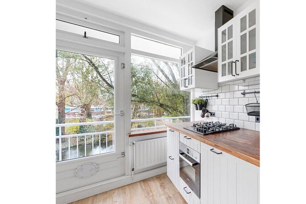 De keuken ligt aan de balkonzijde, is open en heeft alles wat je nodig hebt. Denk aan een vaatwasser, oven met magnetronfunctie, 4-pits-kookplaat, afzuigkap en een koelkast met vriezer.