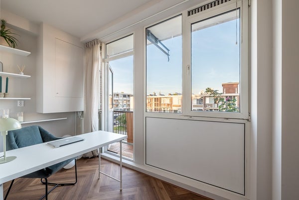 Aan de oostkant van het appartement is de tweede slaapkamer of kantoorruimte gesitueerd.