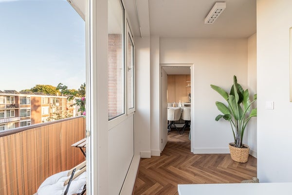 Compleet gerenoveerd en courant ingedeeld appartement van ca. 68m2 met twee slaapkamers en balkons gesitueerd op het westen en oosten met uitzicht over de groene binnentuin.