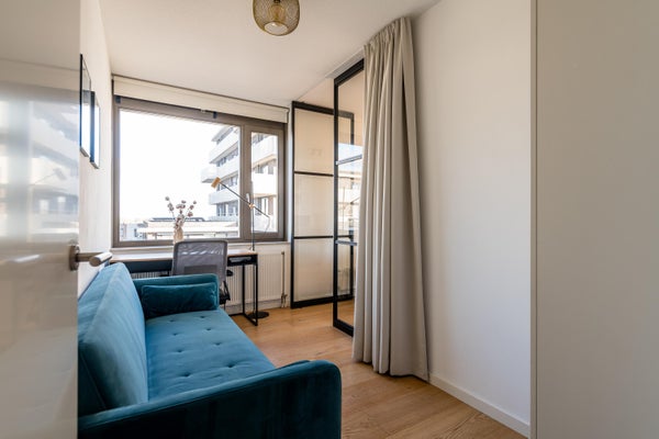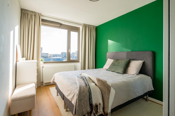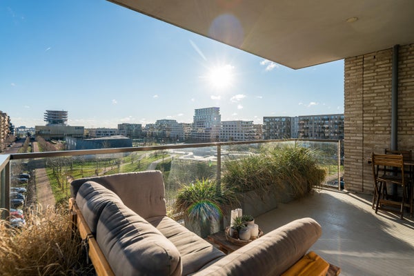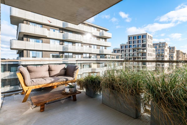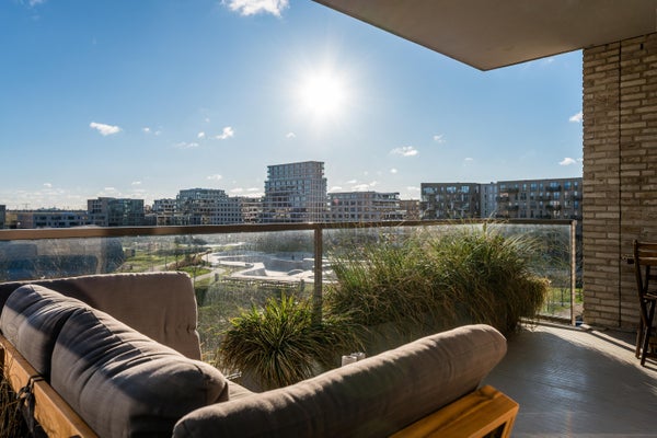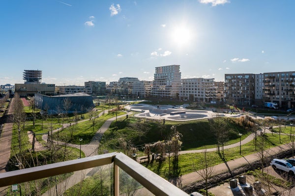 In het nieuwbouwcomplex "The Dock", dat in 2017 is gerealiseerd, komt dit luxe 3-kamer appartement vrij. Gelegen op de vierde verdieping, biedt dit appartement een hoekligging met vrij uitzicht over het sport- en skatepark van Zeeburgereiland en het verlichte IJburg. Het ruime hoekbalkon van ongeveer 15 m² ligt op het zuidoosten, ideaal om van de zon te genieten. De open hoekkeuken is uitgerust met moderne apparatuur en de badkamer beschikt over een inloopdouche en wastafelmeubel. Er zijn twee slaapkamers, waarvan de masterbedroom veel kastruimte biedt. Dit goed geïsoleerde appartement heeft energielabel A en is aangesloten op stadsverwarming. De vereniging van eigenaren wordt professioneel beheerd, met een bijdrage van circa € 189,- per maand. Een parkeerplaats is beschikbaar voor € 40.000,-.